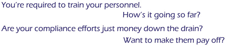 Right to Know | DOT Hazmat | Safety Gear | Privacy Act | OFAC | EPA | OSHA | Emergency Response | Paper Flow | General Safety | Red Flags Training